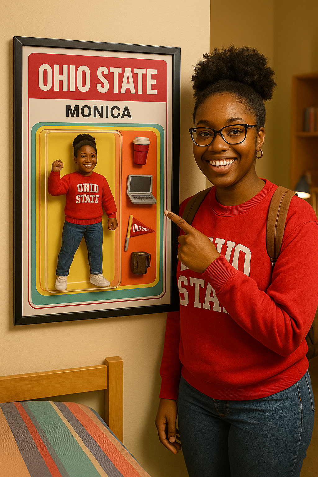 Turn your favorite student into a collectible! From Decision Day to graduation, celebrate the moment with a custom action figure digital portrait designed to look just like them — complete with personalized accessories, school colors, and your college or mascot theme.